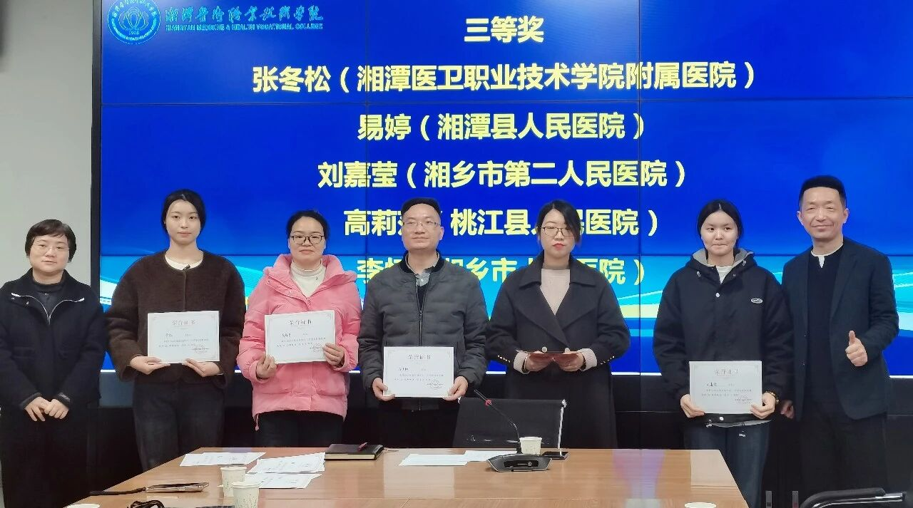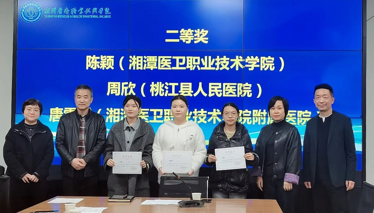 湘水传情,杏林逐梦。12月20日,在湘潭医卫职业技术学院举办的第五届师生三方同台专业技能竞赛中,桃江县人民医院参赛队伍凭借扎实的专业功底、娴熟的实操技能和稳定的临场发挥脱颖而出,实习生周欣荣获临床技能竞赛二等奖,带教老师高莉莎荣获临床技能竞赛三等奖,充分展现了我院医学教育与临床实践深度融合的育人成效。桃江县人民医院于2019年成为湘潭医卫职业技术学院附属医院。医院始终秉持医、教、研三位一体的发展理念,高度重视医学人才的培养工作。接到此次竞赛邀请后,医院即刻响应,精心选拔临床骨干师资与优秀实习生组建参赛队伍,并围绕临床组竞赛项目开展专项集训。
