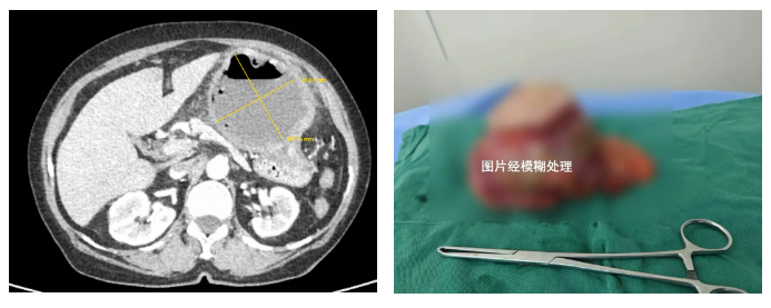 手术在气管插管全麻下精准实施,科室团队凭借娴熟的腹腔镜微创操作技术,术中完整成功切除约10×8×5cm的巨大胃间质瘤,整个手术过程操作精准、全程无明显出血,大幅降低手术创伤。